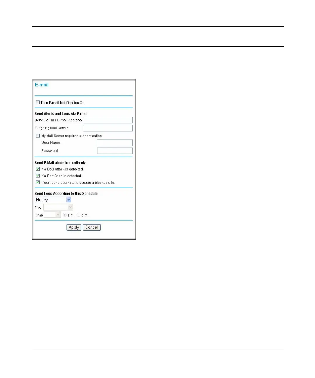 • Send To This E-mail Address. Enter the e-mail address to which logs and alerts are sent. This
