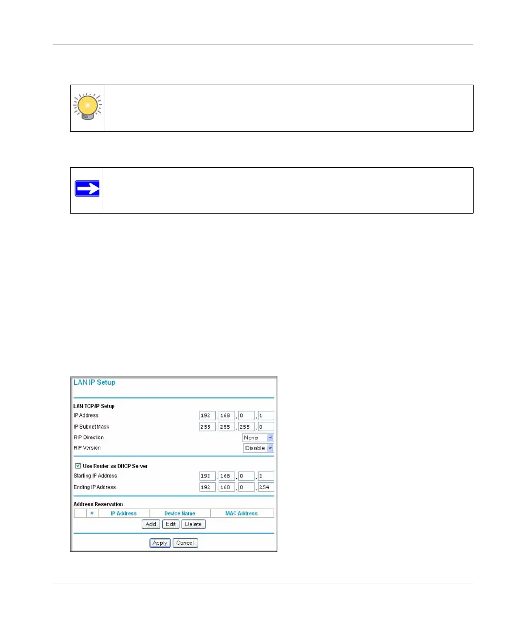 2. In the main menu, under Advanced, click LAN IP Setup to display the following screen.