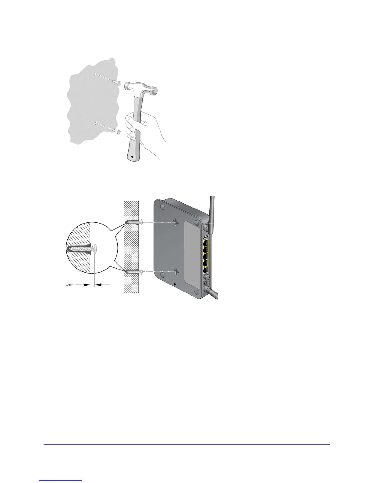 3. Insert screws into the wall anchors, leaving 3/16 in. (0.5 cm) of each screw exposed.
