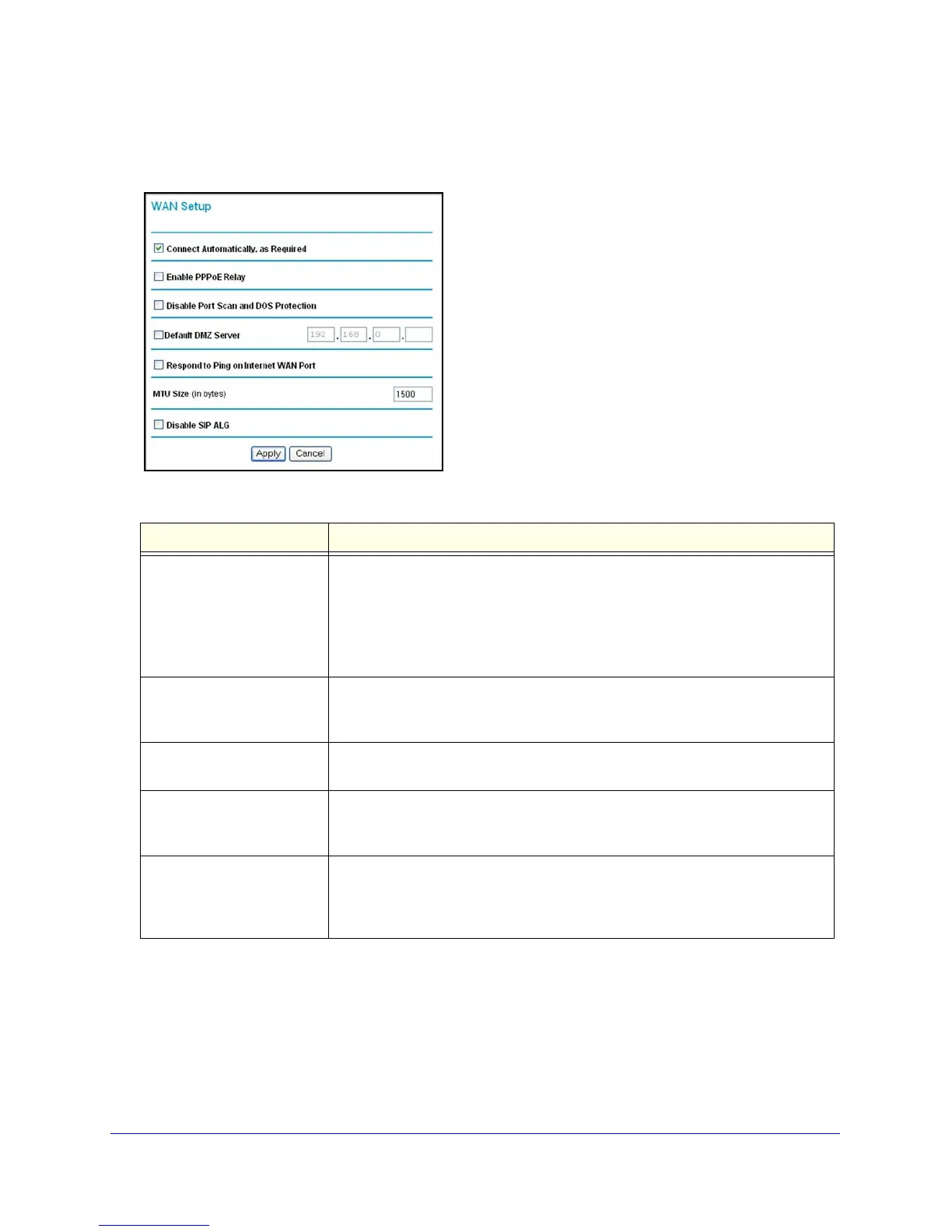 From the main menu, under Advanced, click WAN Setup to view the WAN Setup screen.