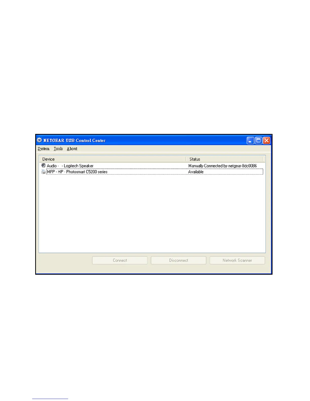 The USB Control Center utility allows you to control a shared USB