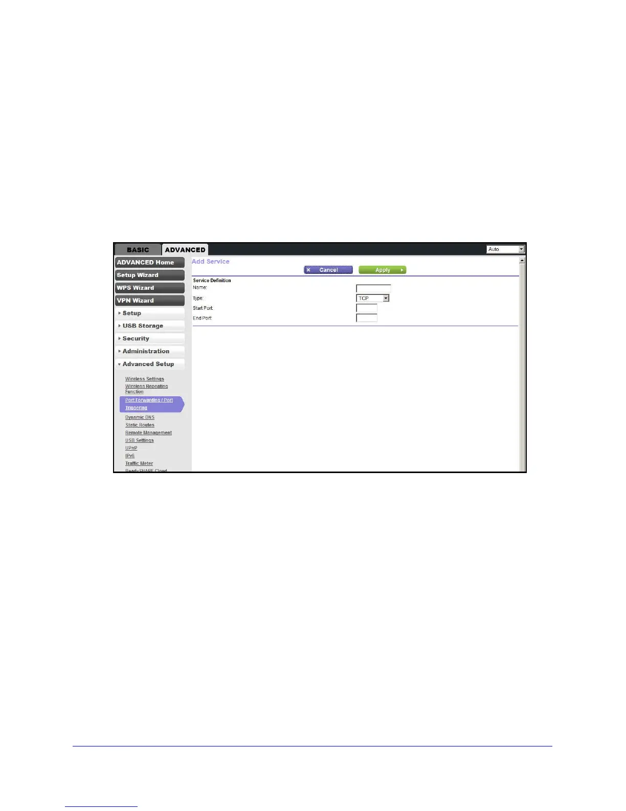 > Advanced Setup > Port Forwarding/Port Triggering.