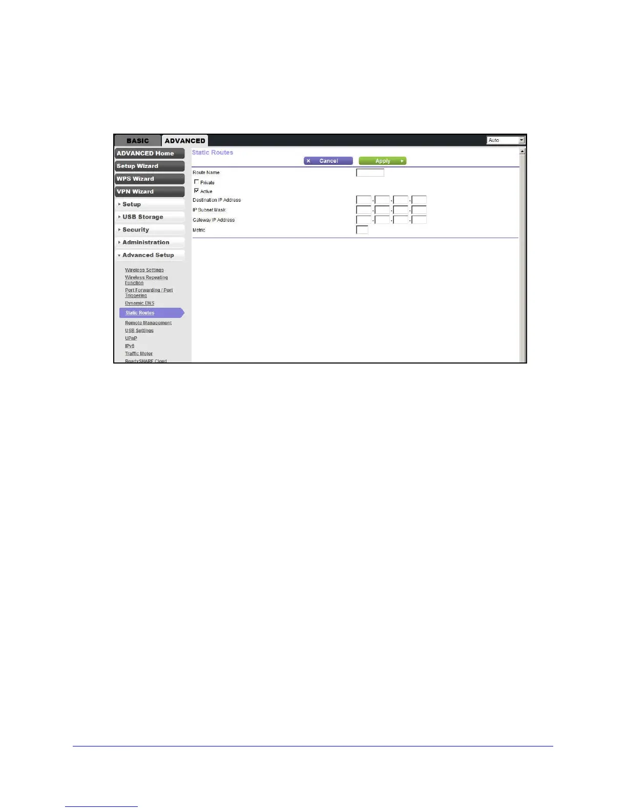 1. Select ADVANCED > Advanced Setup > Static Routes, and click Add to display the