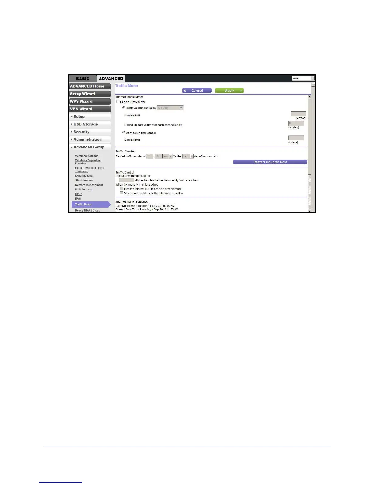 1. Click ADVANCED > Advanced Setup > Traffic Meter to display the following screen:
