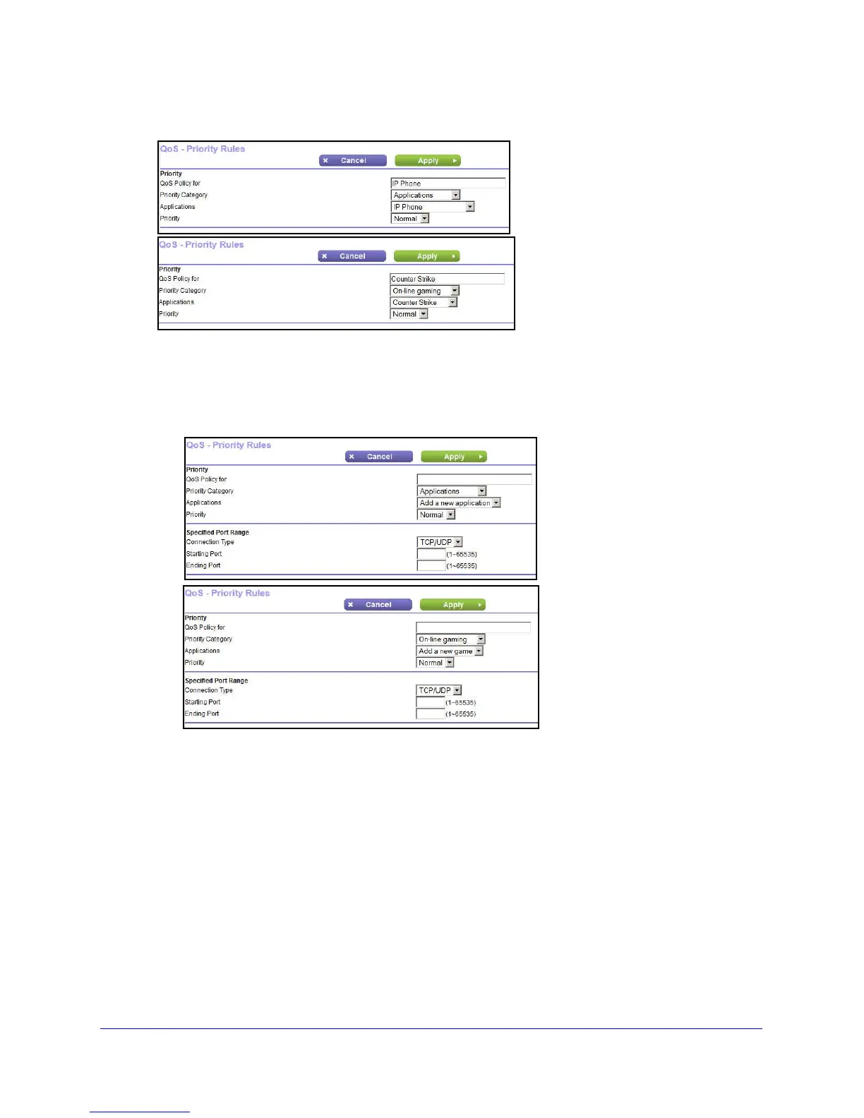 a. When you add a new entry, the QoS - Priority Rules screen expands as shown: