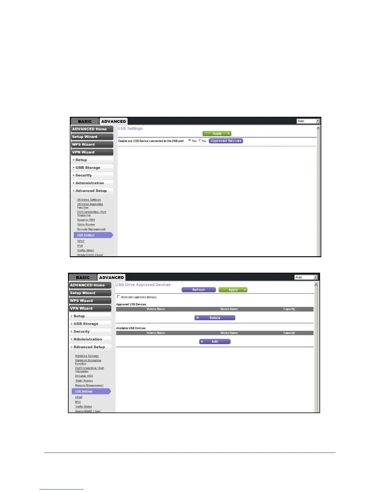 NCED > Advanced Setup > USB Settings. The following screen displays: