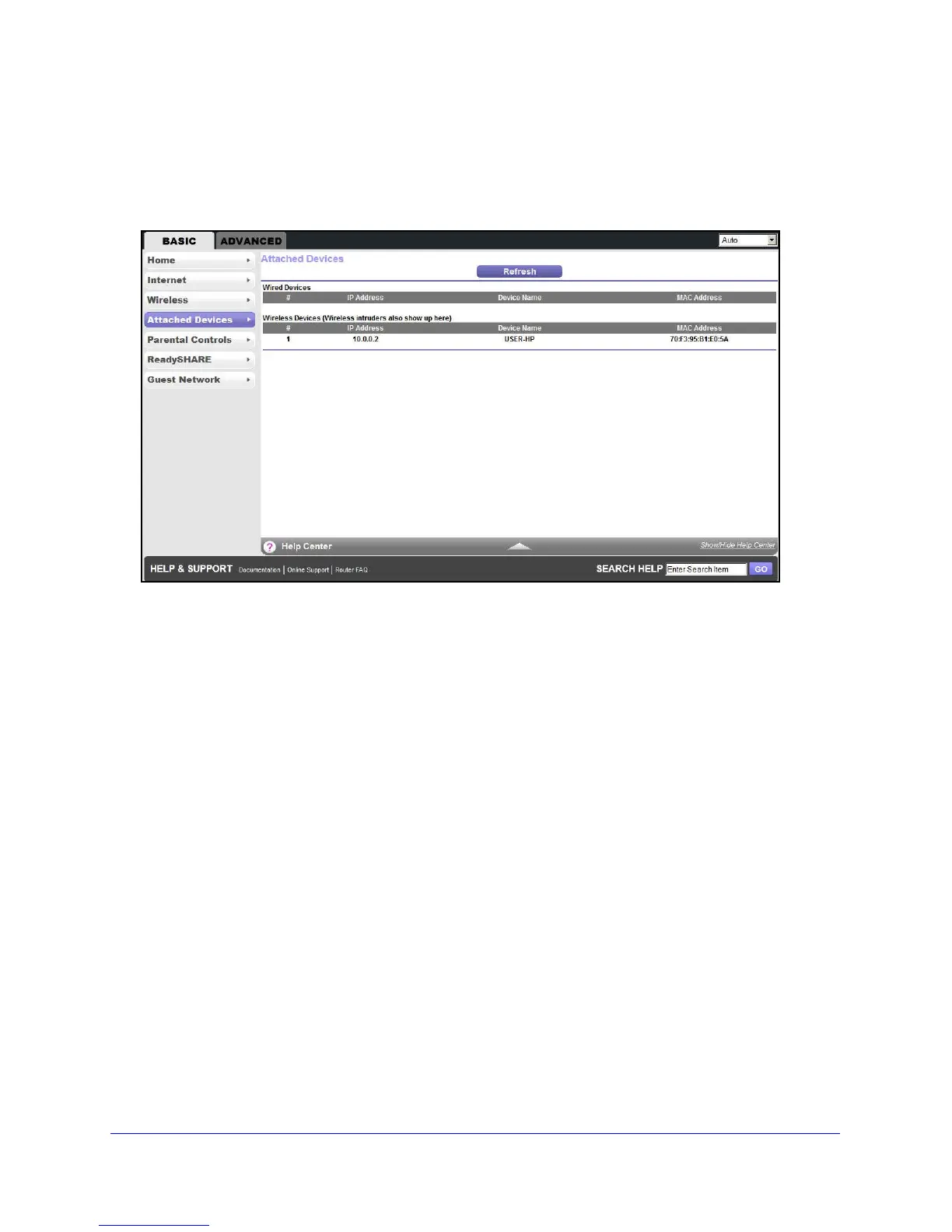From the BASIC Home screen, select Attached Devices to display the following screen: