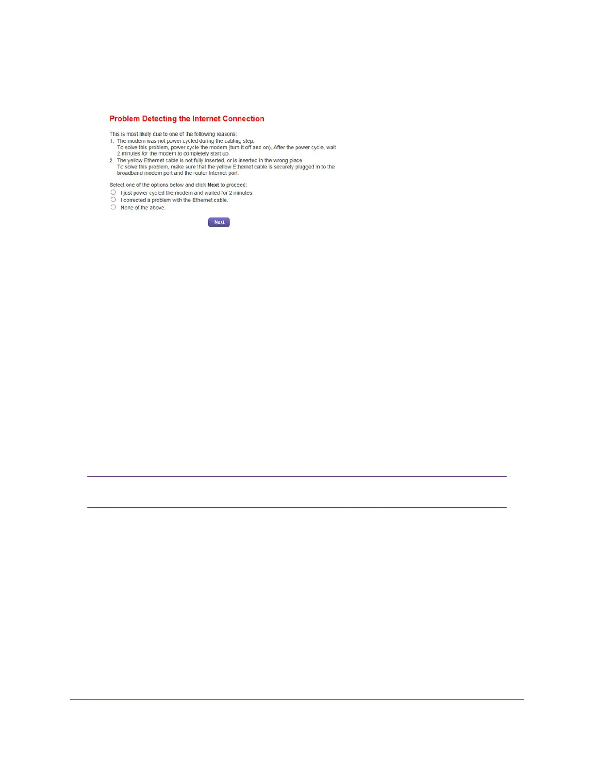 The page that might display states that a problem occurred while the wizard was detecting the Internet
