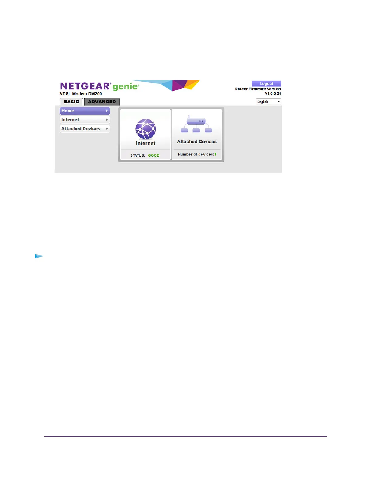 The BASIC Home page displays a dashboard that lets you see the status of your Internet connection
