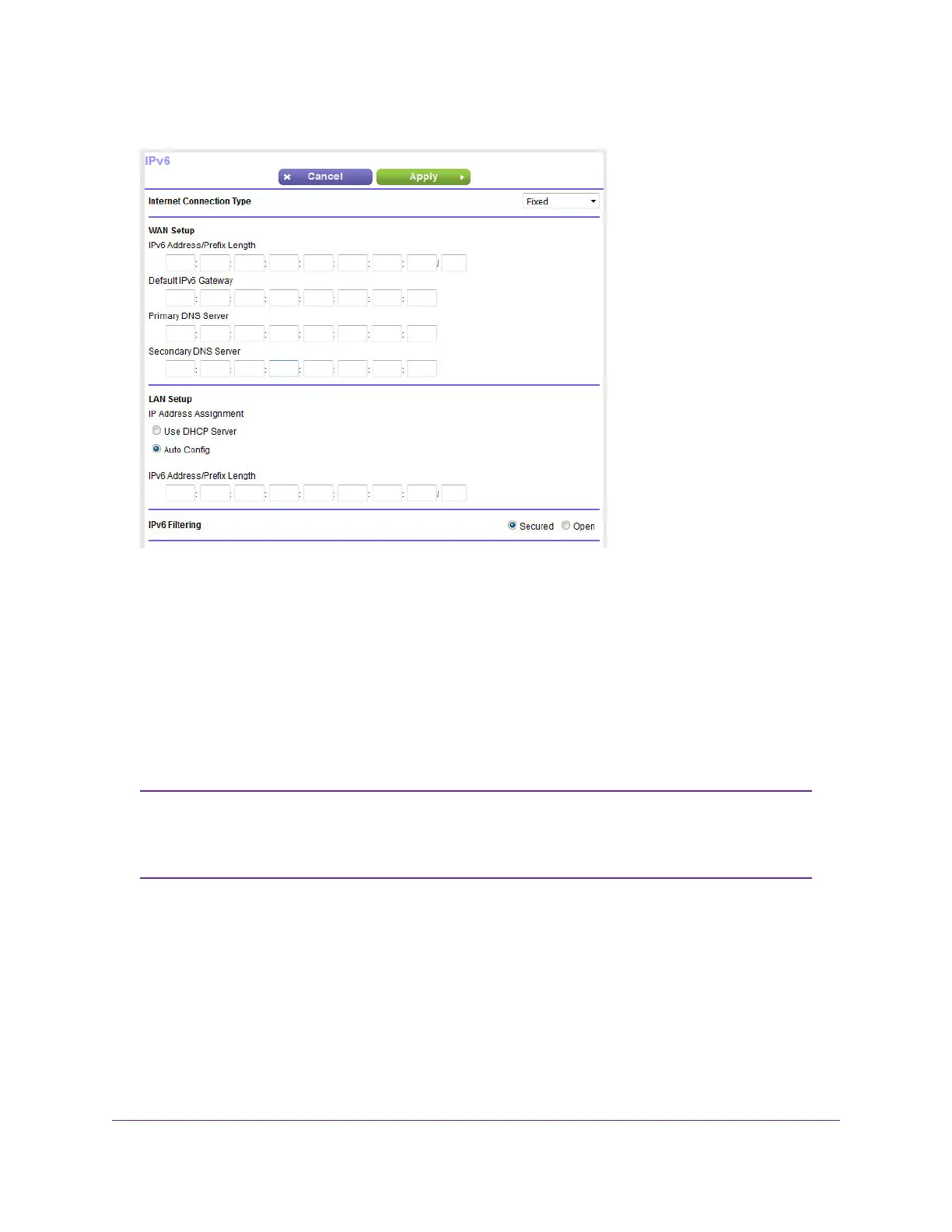 configured for the IPv4 Internet connection on the Internet Setup page. (See Manually