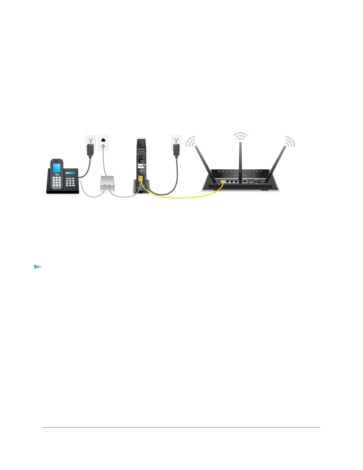 Figure 6. Modem cabling for DSL service and a WiFi router