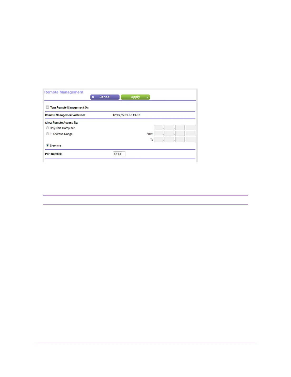• To allow access from any IP address on the Internet, select the Everyone radio button.This radio
