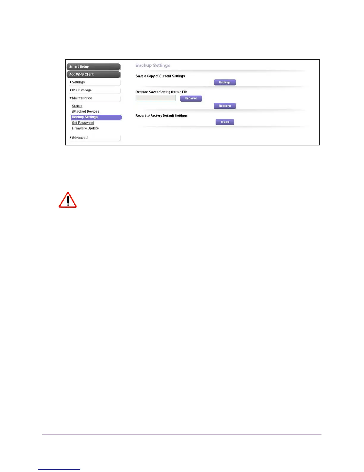 By default, the name of the backup file is NETGEAR_EX6200.cfg.