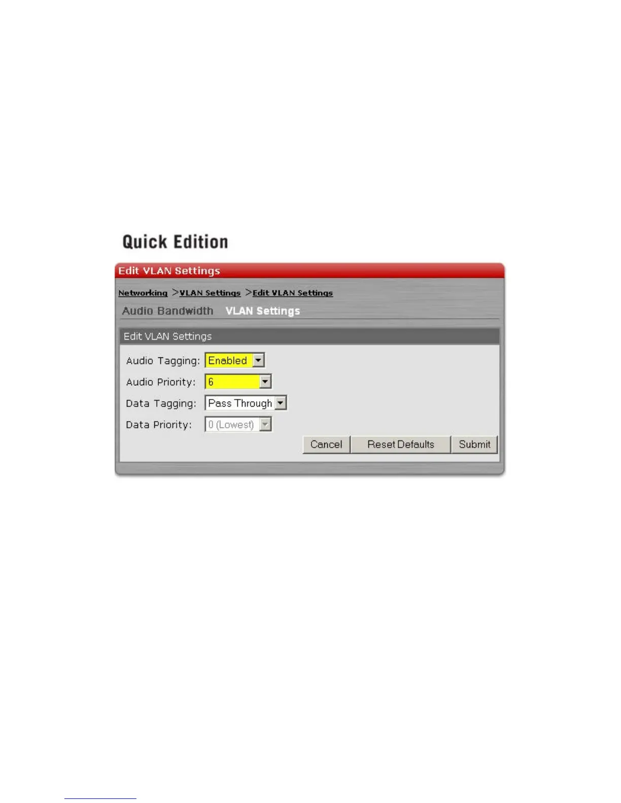 VLAN Settings and then Change Details. From the pull-down menu labeled Audio Tagging,