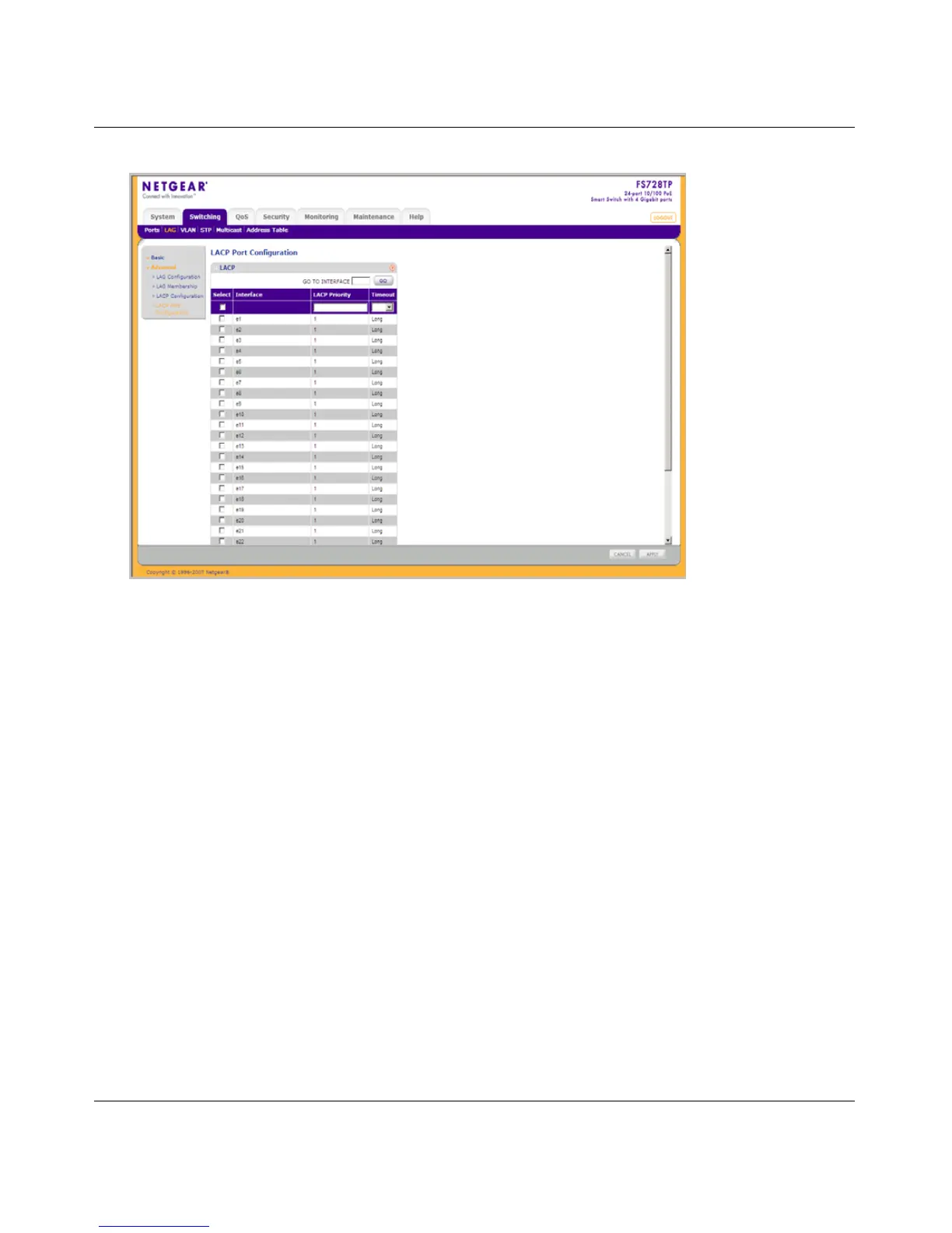 3. Enter the LACP Priority and select the Timeout in the provided fields in the first row.