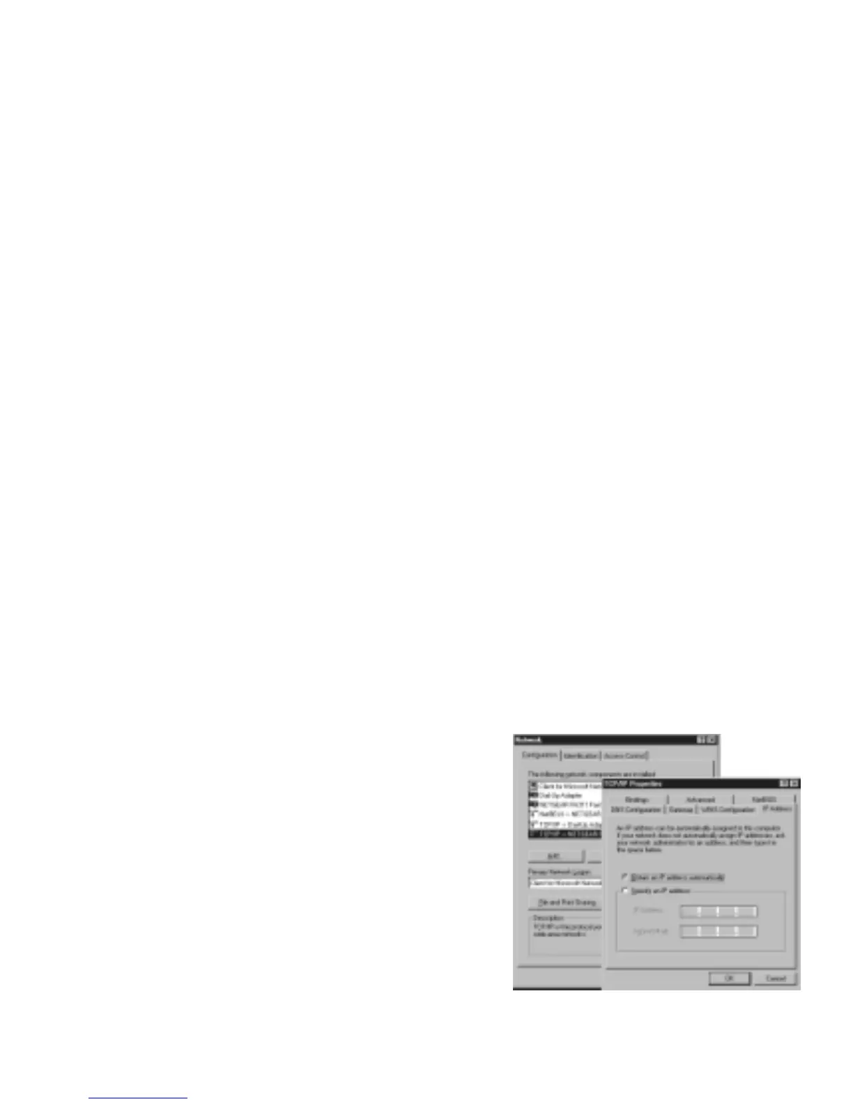 4. In the list of installed network components, select the TCP/IP entry for the computer’s