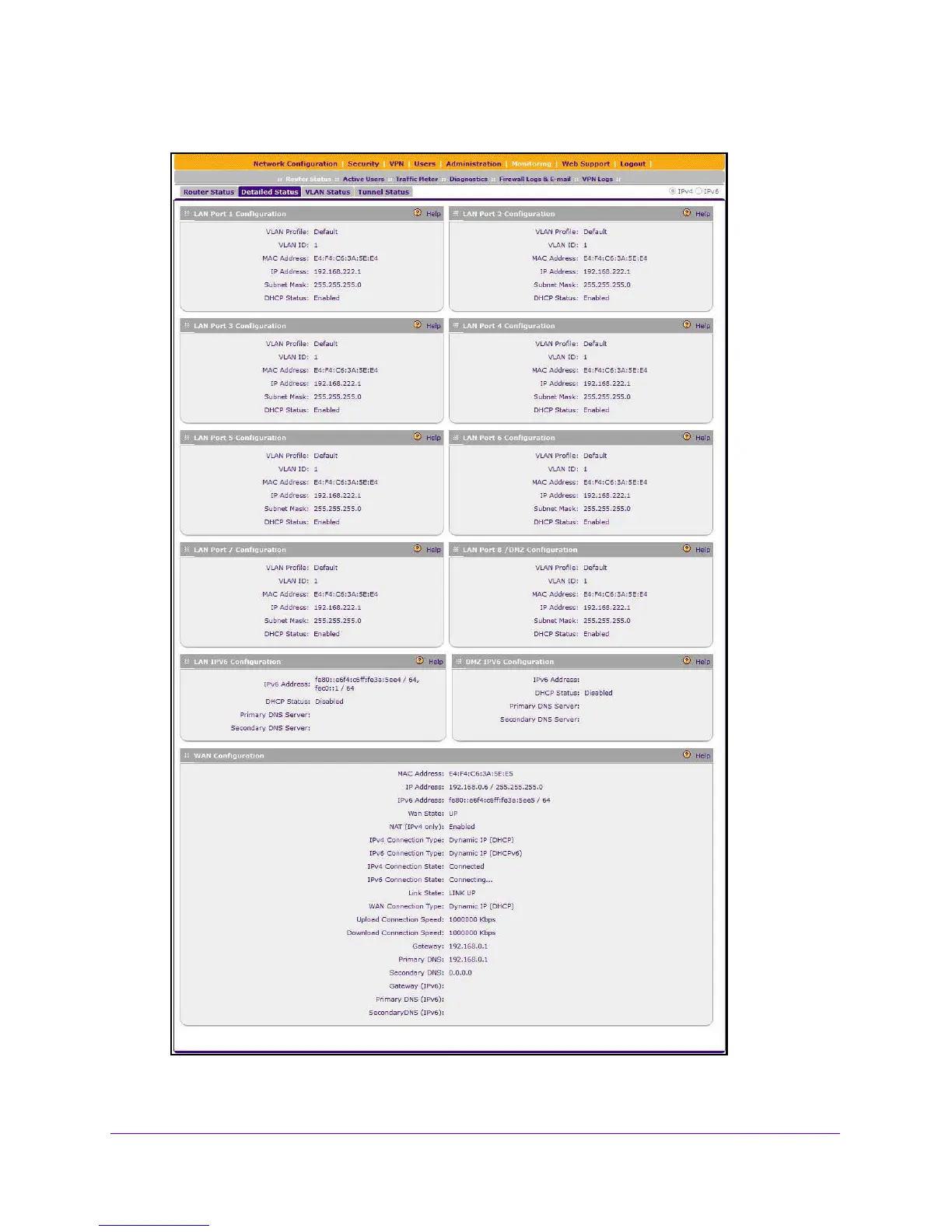 2. Select Monitoring > Router Status > Detailed Status.