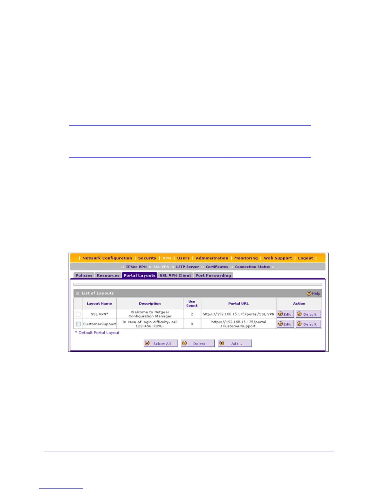 > Portal Layouts. The Portal Layouts screen displays. (The