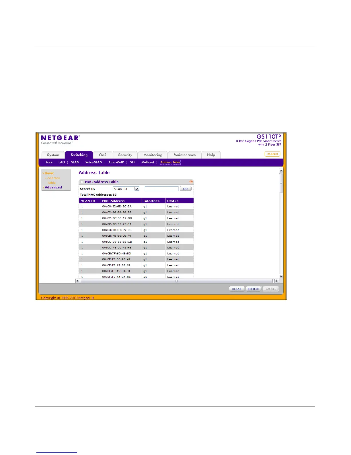 1. Use the Search By field to search for MAC Addresses by MAC Address, VLAN ID, or