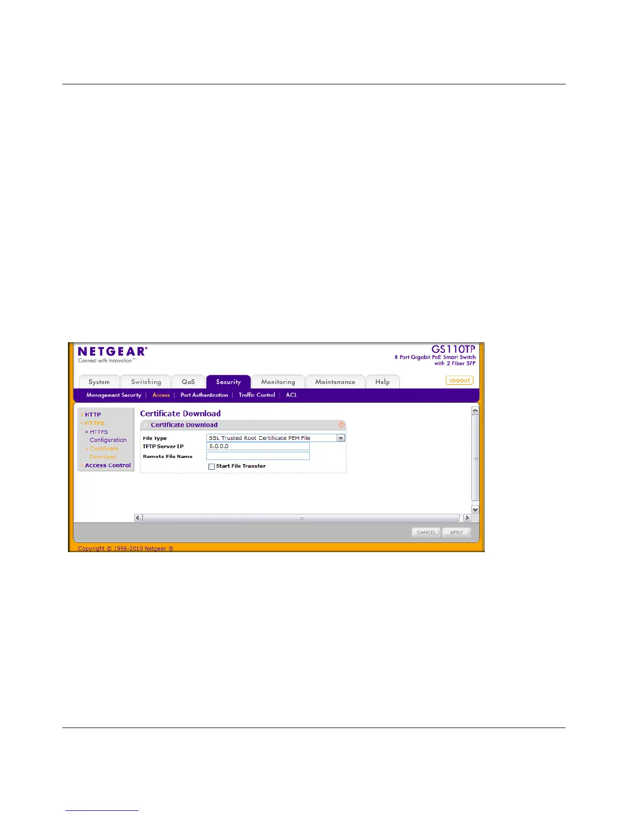 To display the Certificate Download page, click Security Access, and then click the HTTPS