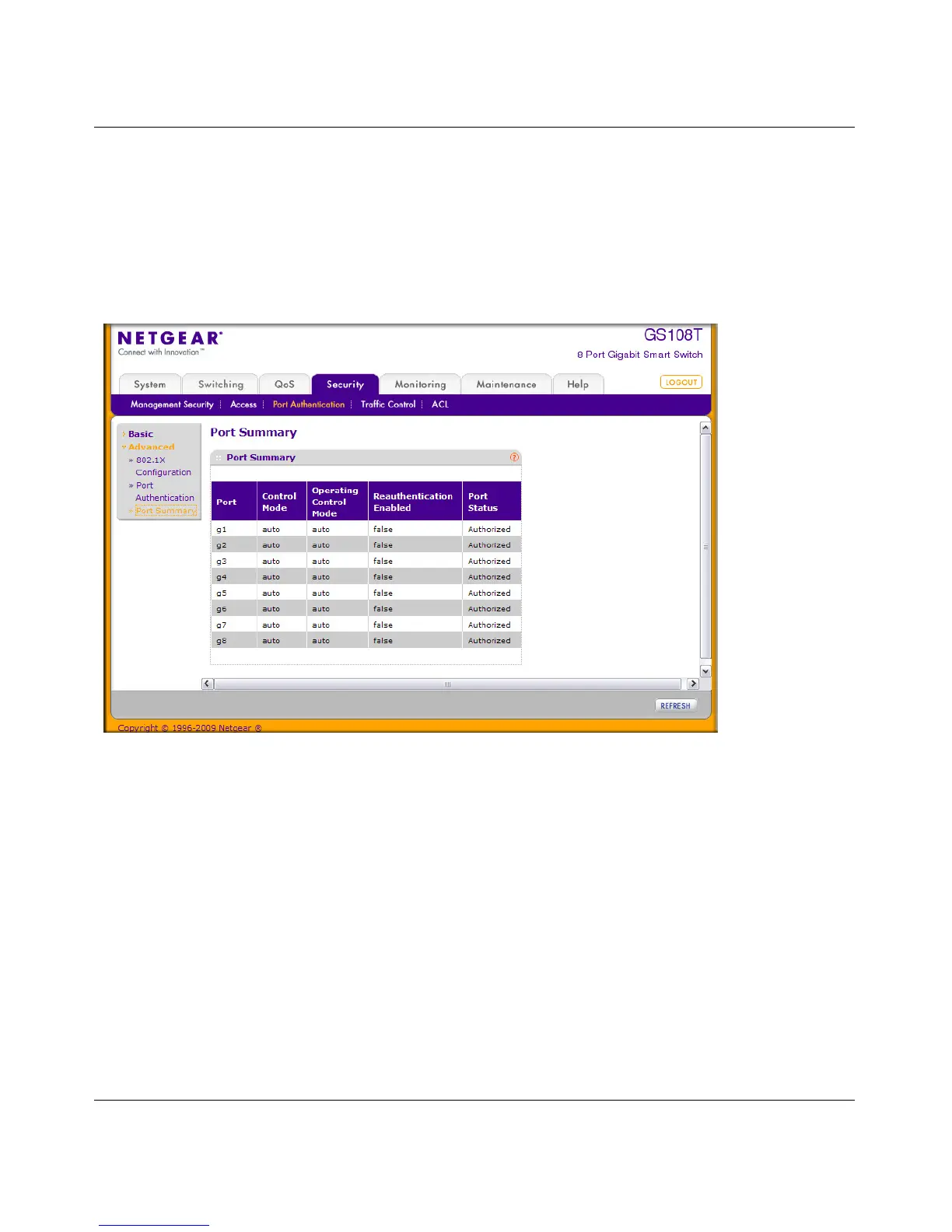 To access the Port Summary page, click Security Port Authentication Advanced Port