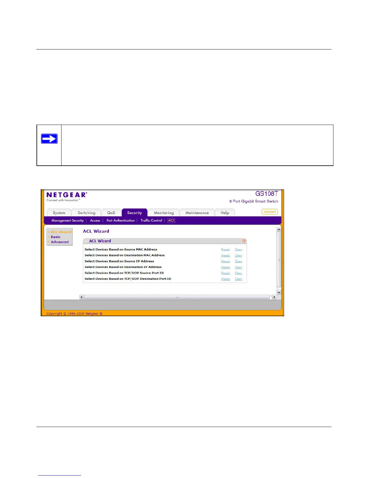 The ACL Wizard simplifies the ACL rule configuration process. The Wizard contains a short list