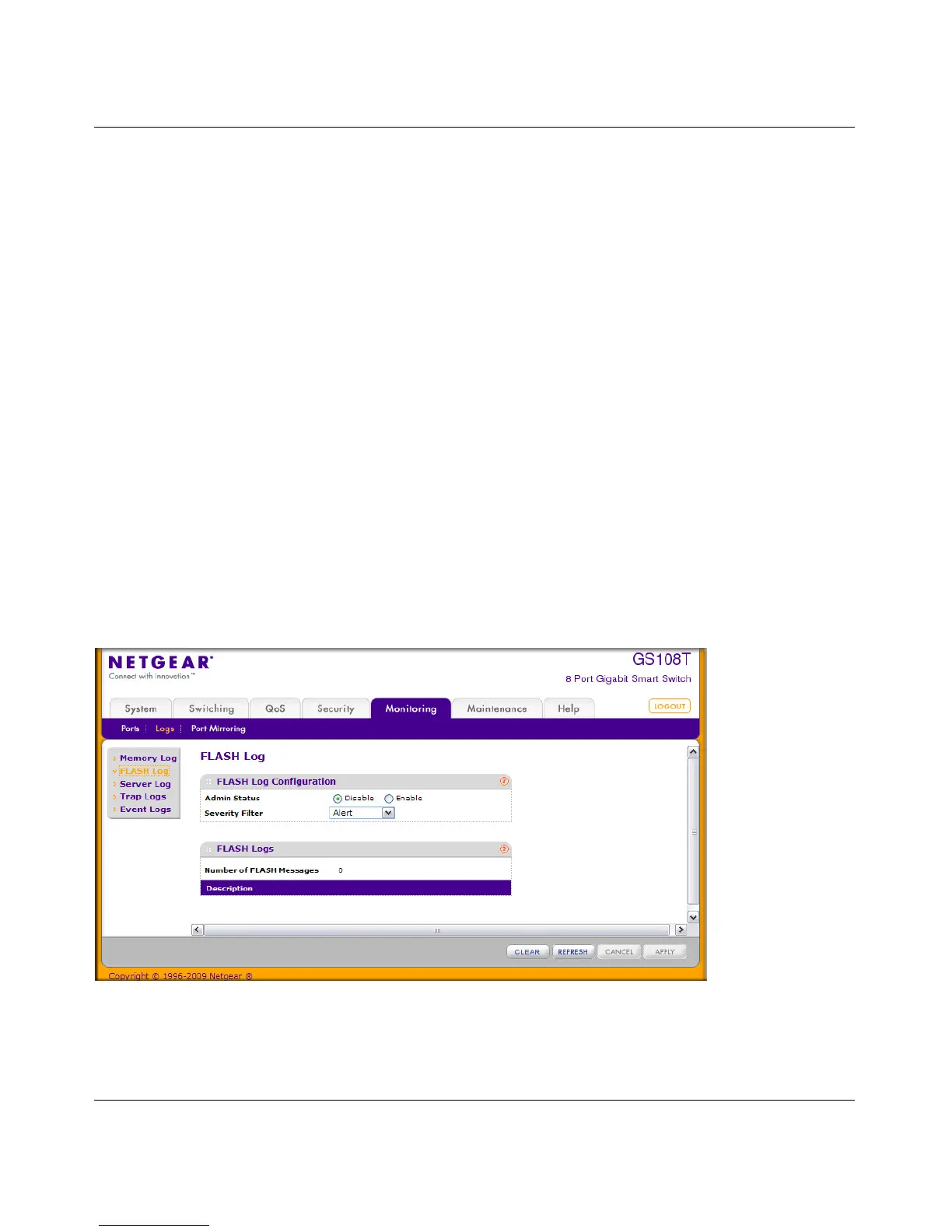 To access the FLASH Log Configuration page, click the Monitoring Logs tab, and then click
