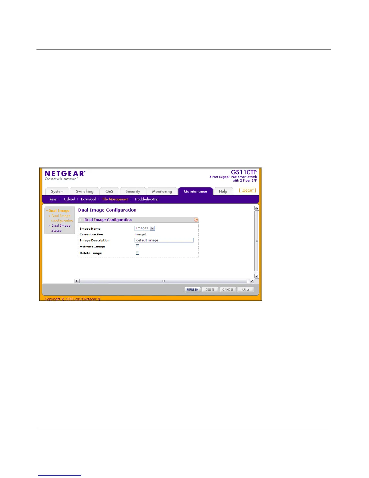 To display the Dual Image Configuration page, click Maintenance File Management Dual