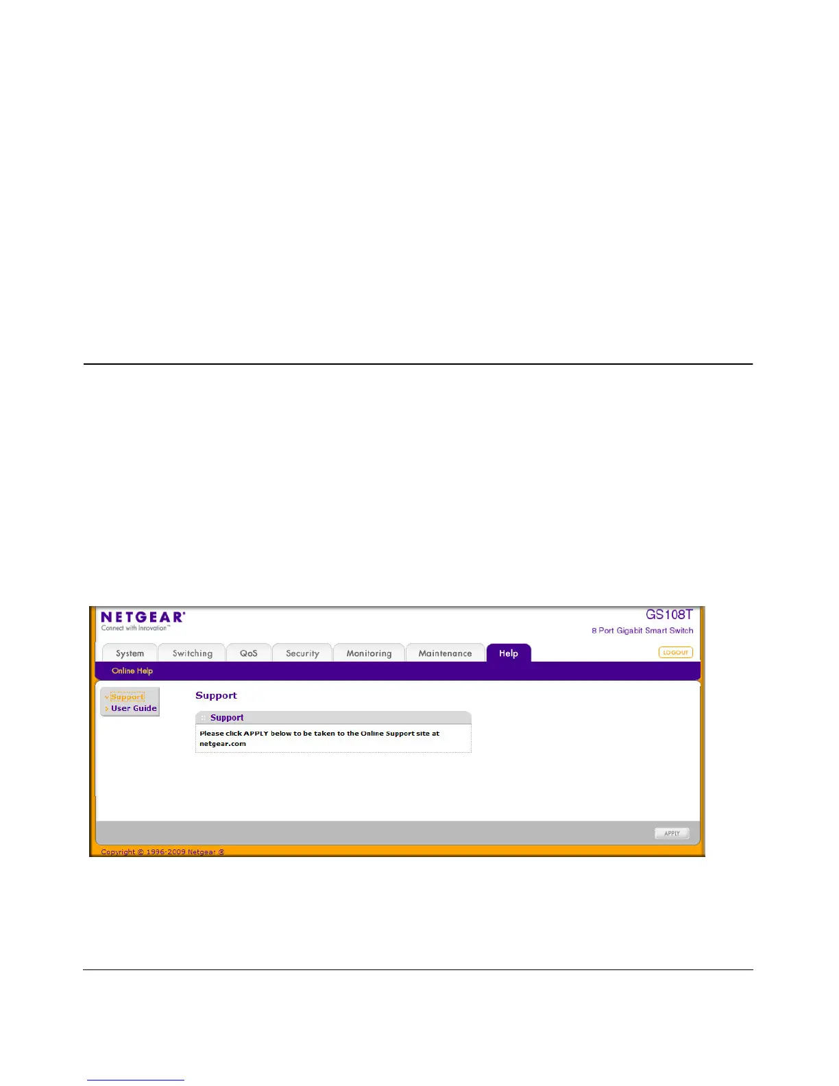 To connect to the NETGEAR support site for the GS108T or GS110TP, click Apply.