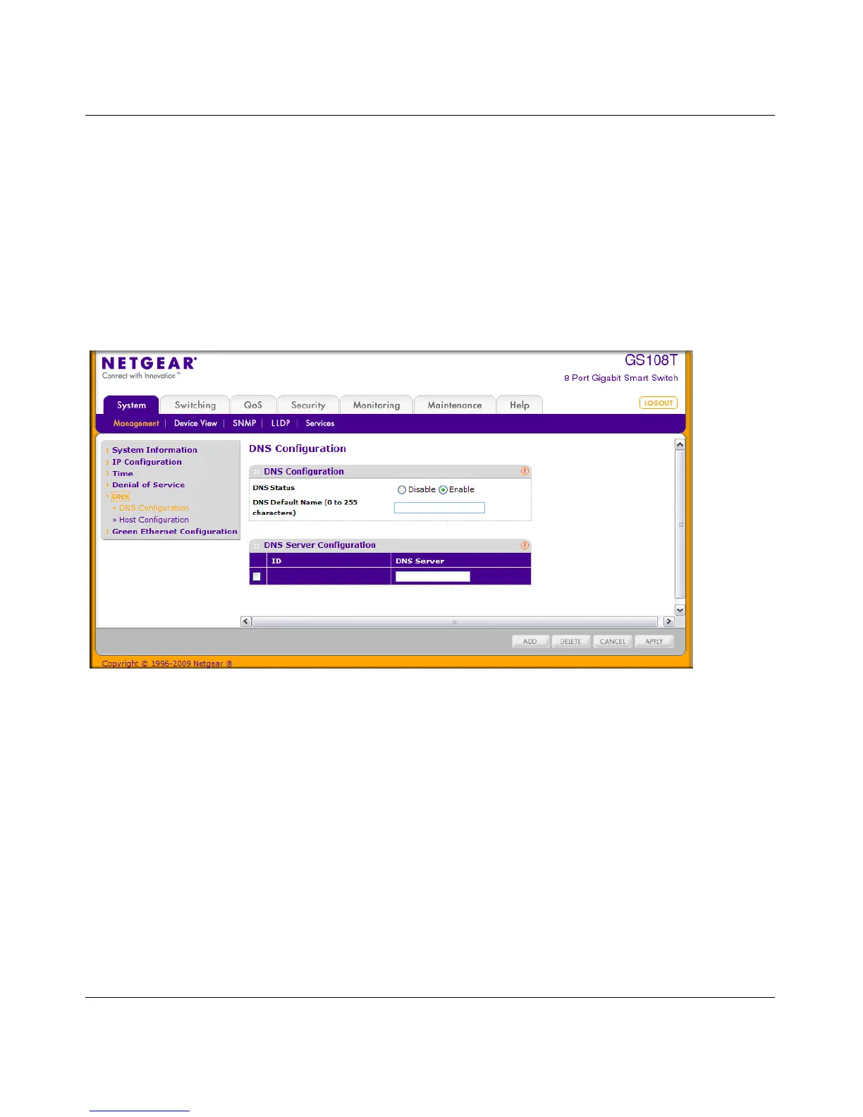 • Enable. Allow the switch to send DNS queries to a DNS server to resolve a DNS domain