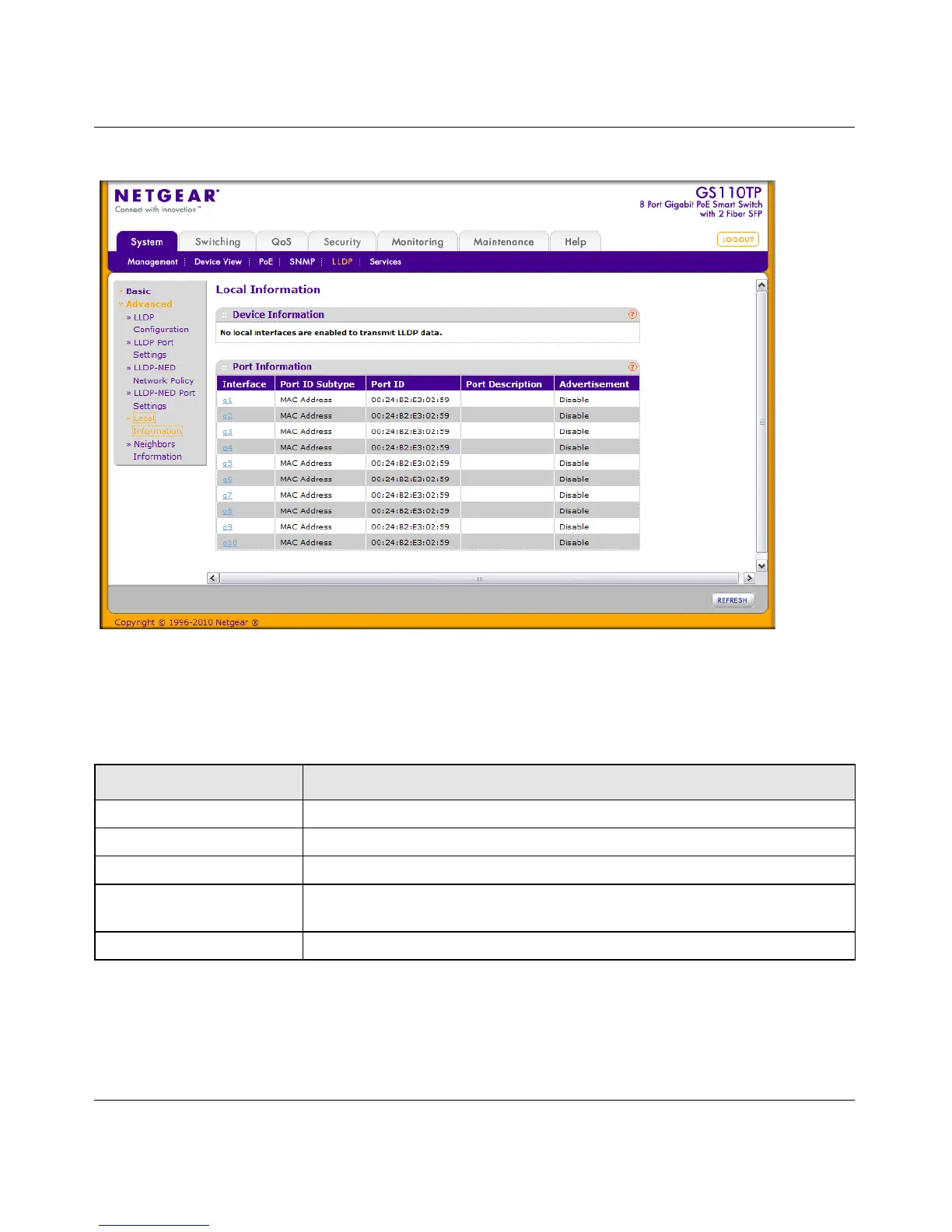 Table 2-7. LLDP Local Information Fields