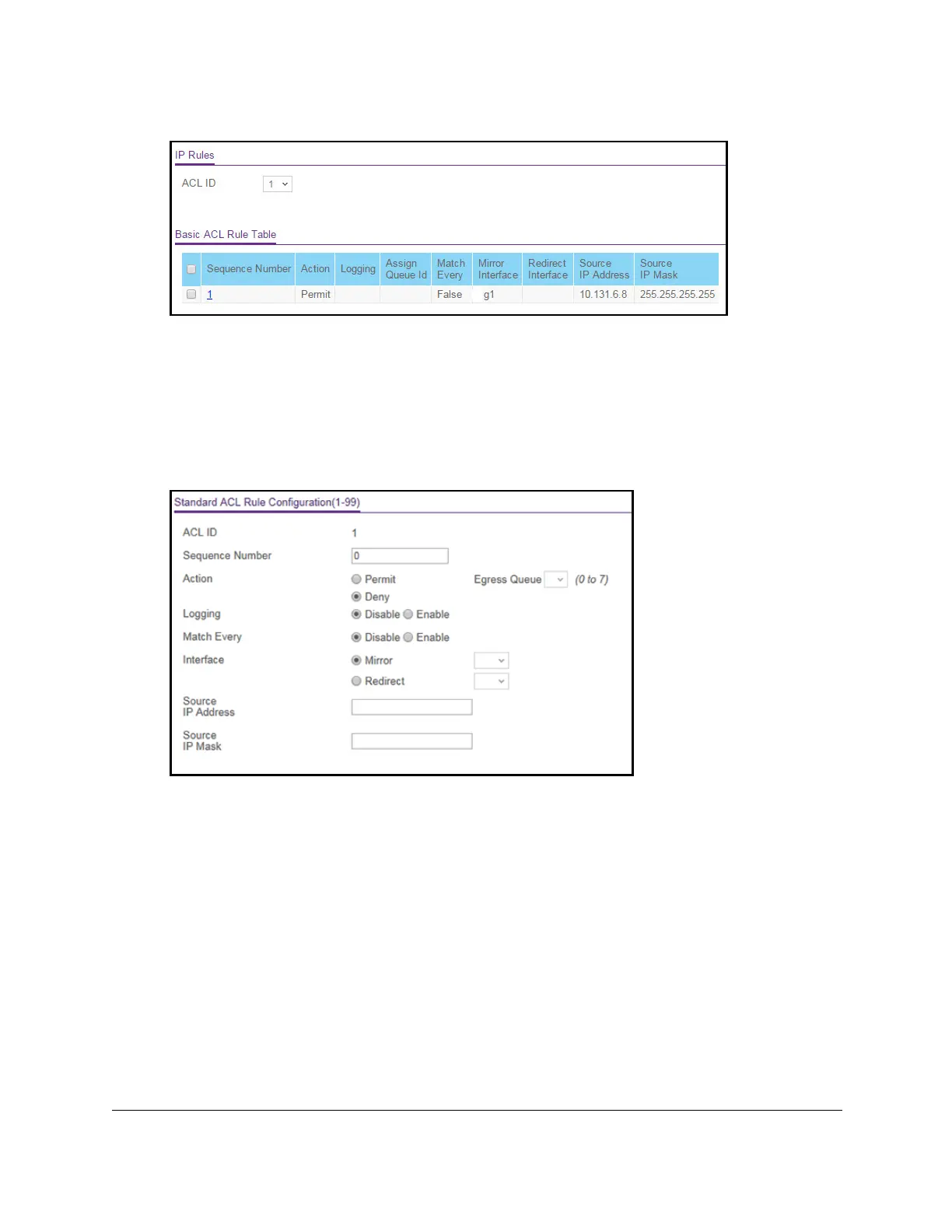 If no rules exist, the Basic ACL Rule Table might show the message No rules were