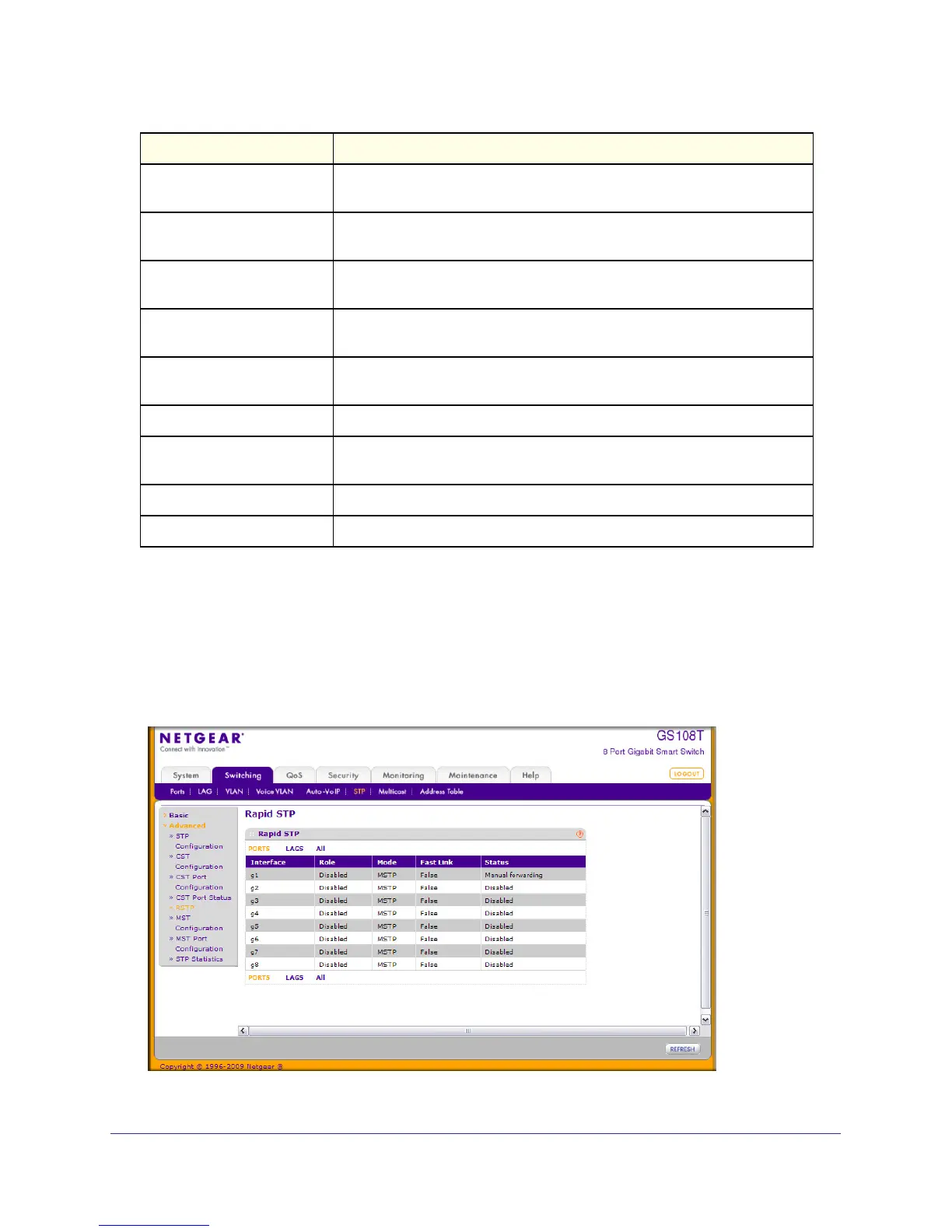 To display the Rapid STP page, click Switching > STP > Advanced RSTP.