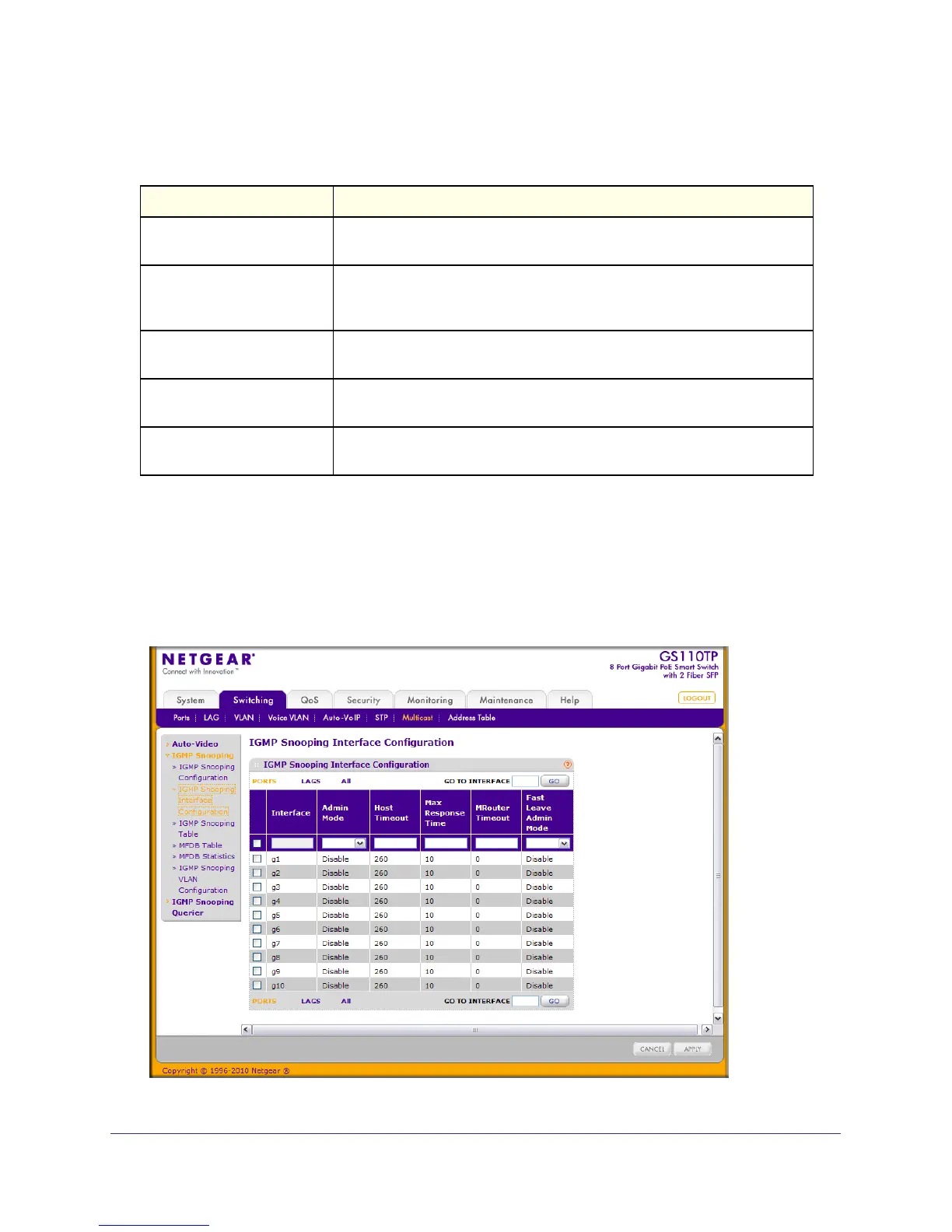 To access the IGMP Snooping Interface Configuration page, click Switching Multicast