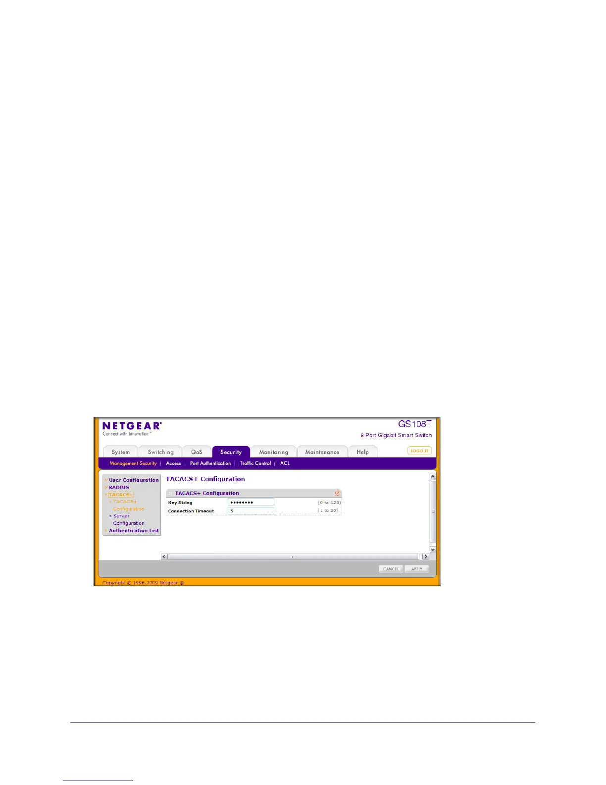 communications between the GS108T or GS110TP and the TACACS+ server. The valid
