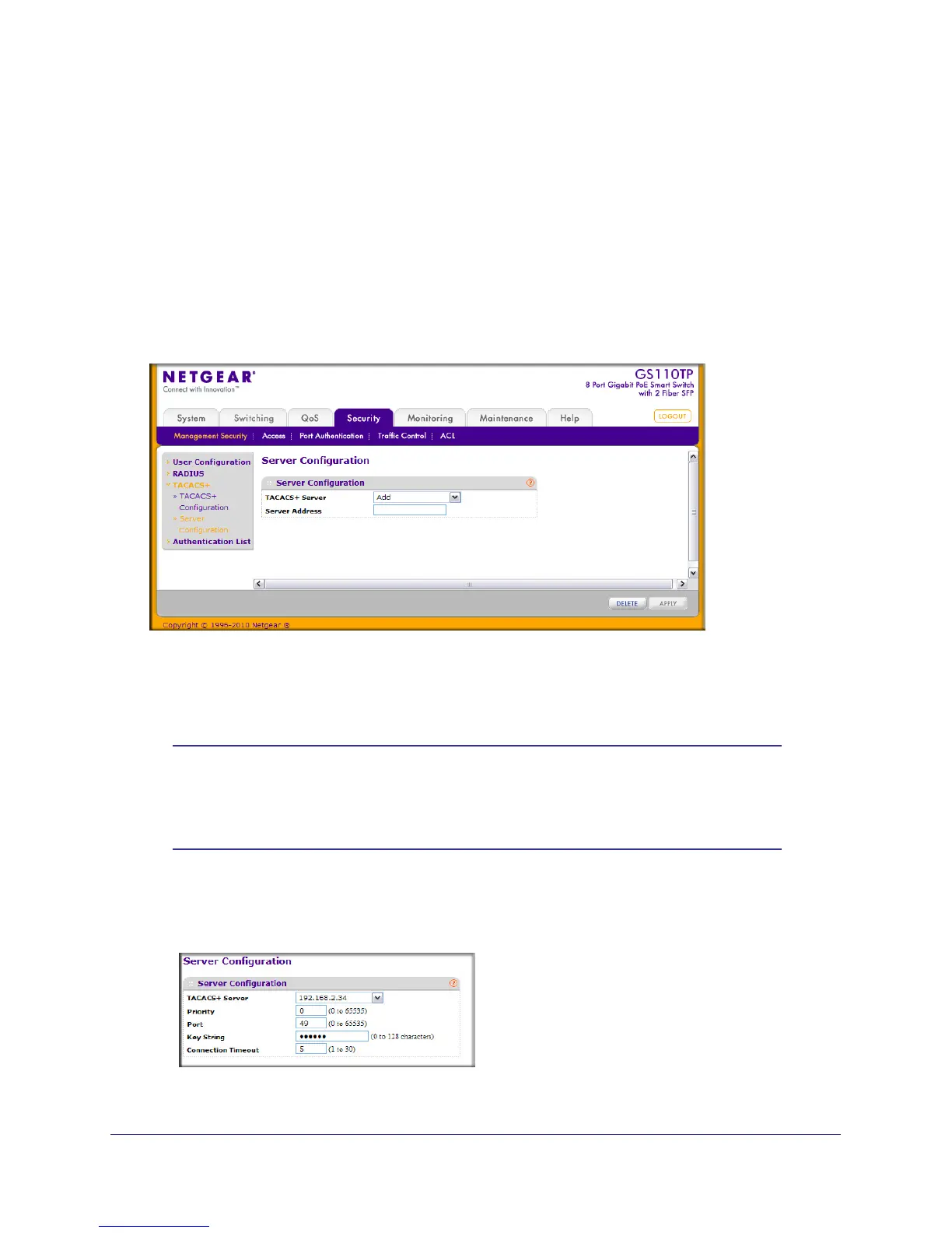 To display the TACACS+ Server Configuration page, click Security Management Security,