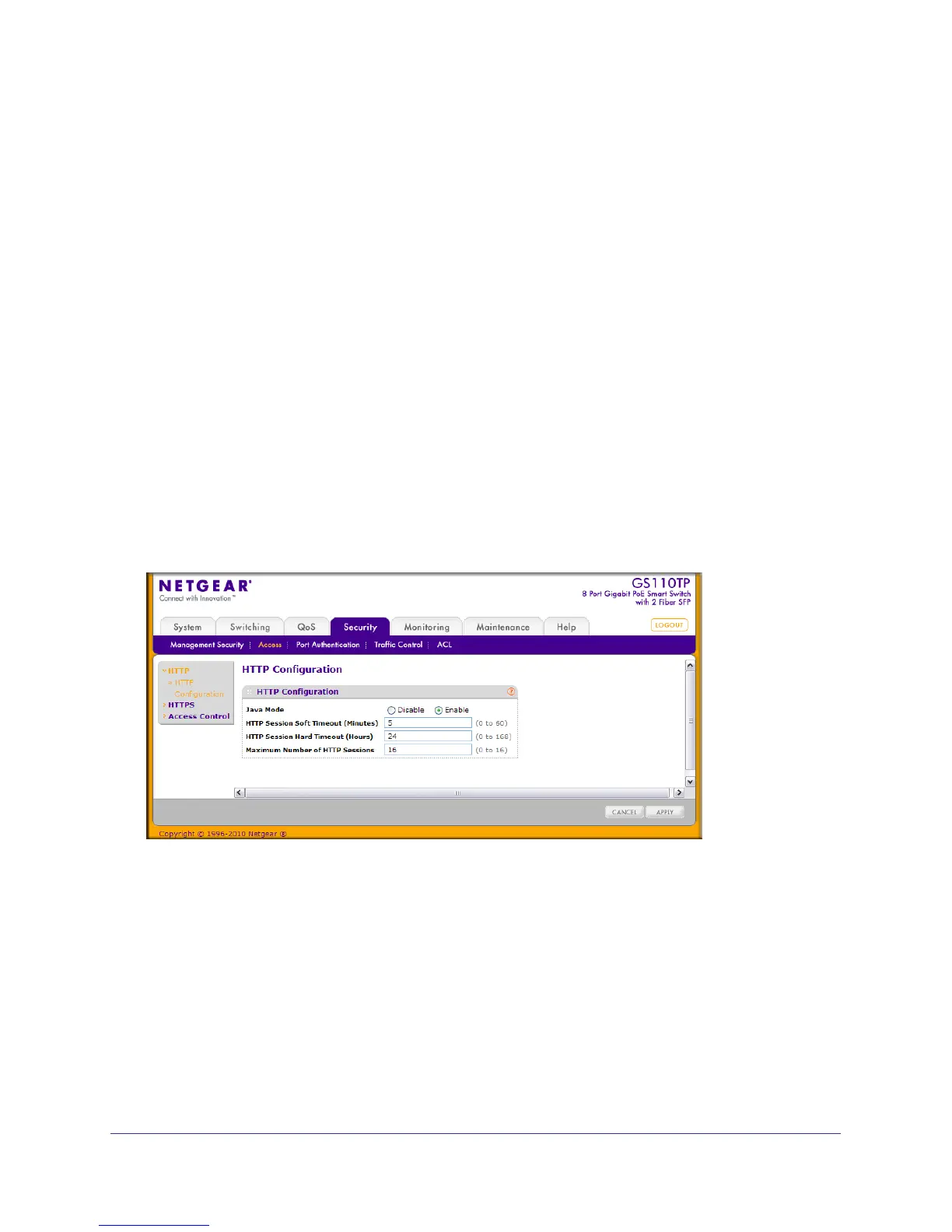 To access the HTTP Configuration page, click the Security tab, then click Access, and then