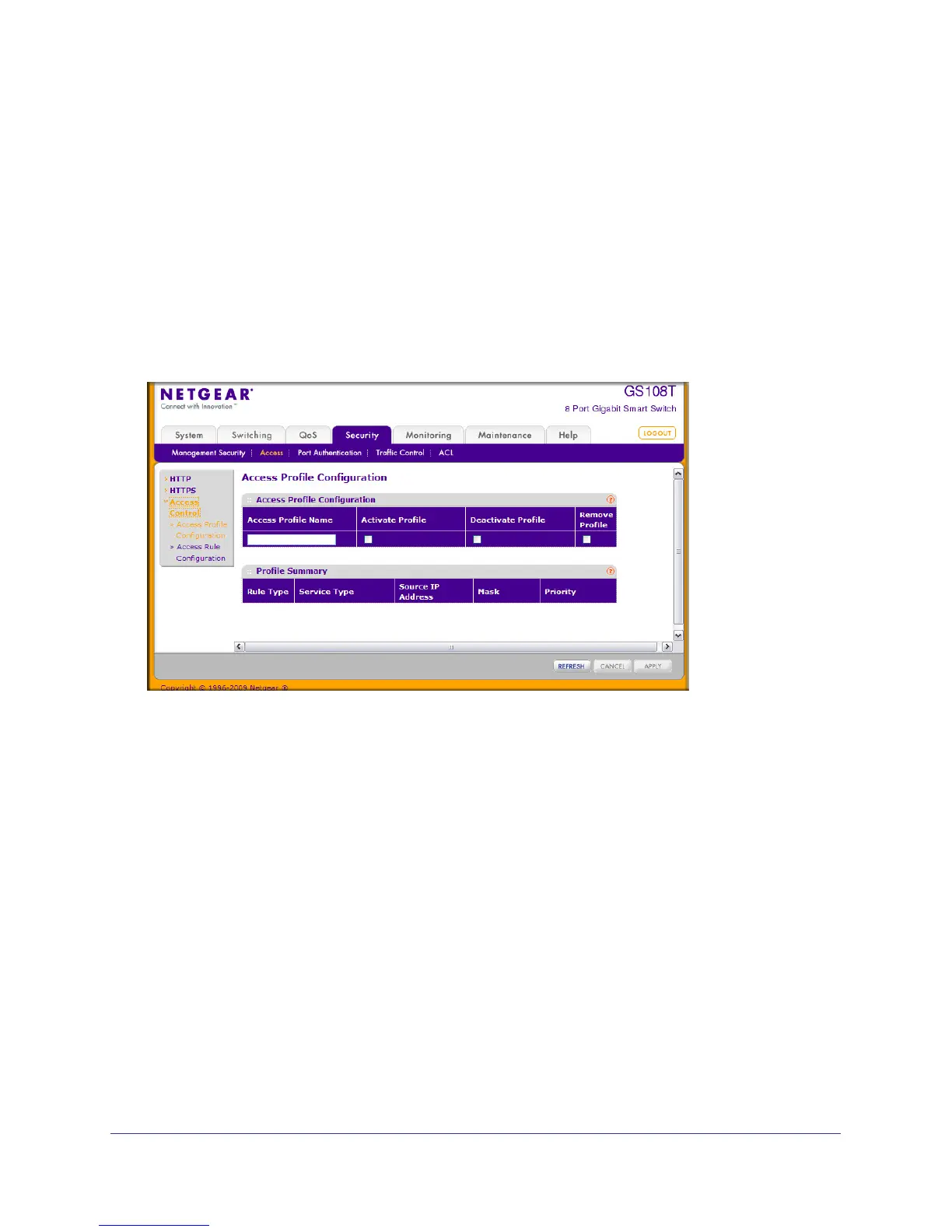 To access the Access Profile Configuration page, click Security Access, and then click the