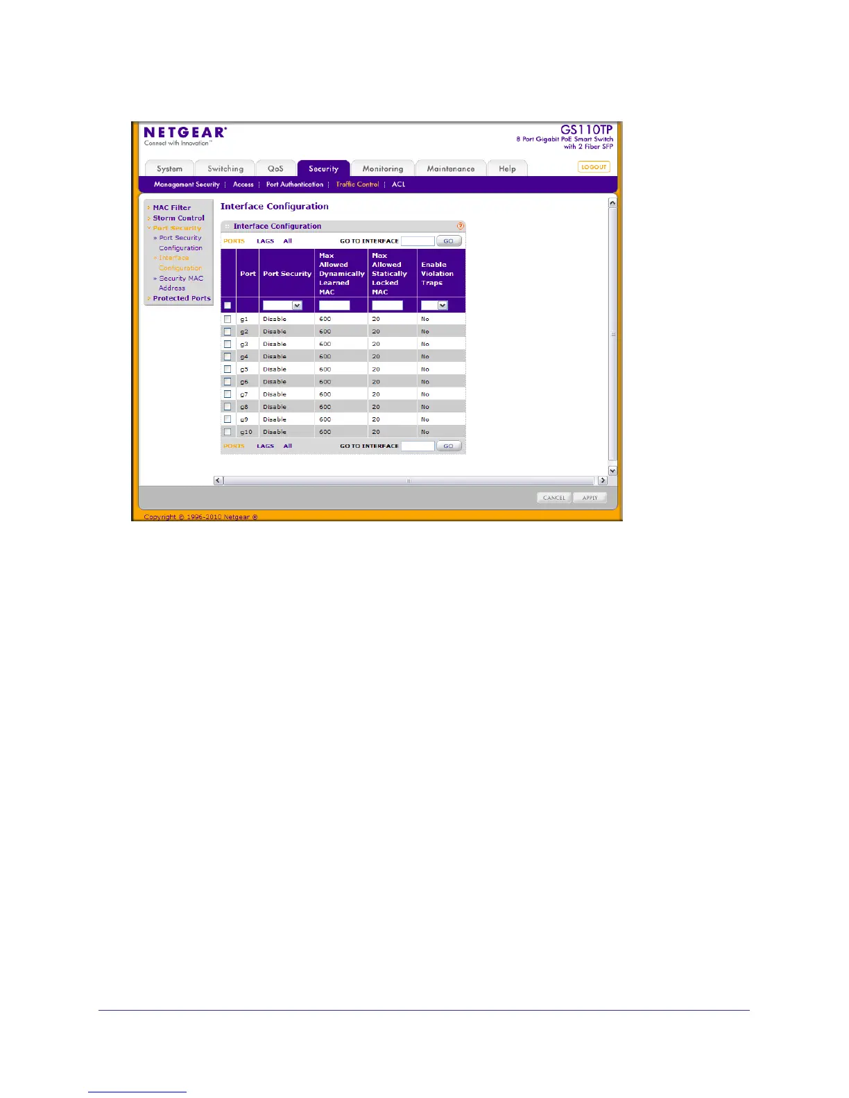 • Port Security. Enable or Disable the port security feature for the selected port.