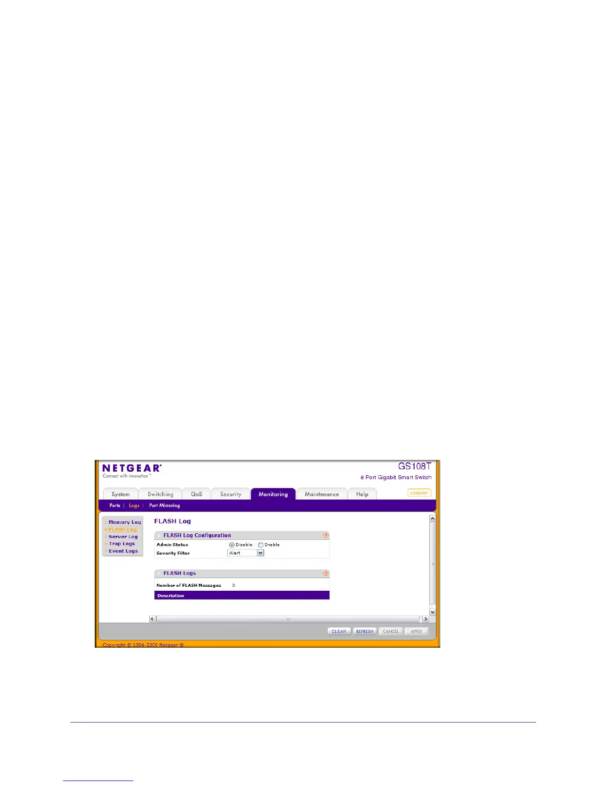 To access the FLASH Log Configuration page, click the Monitoring Logs tab, and then