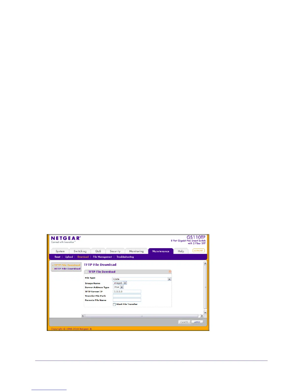 To access the TFTP File Download page, click Maintenance Download TFTP File