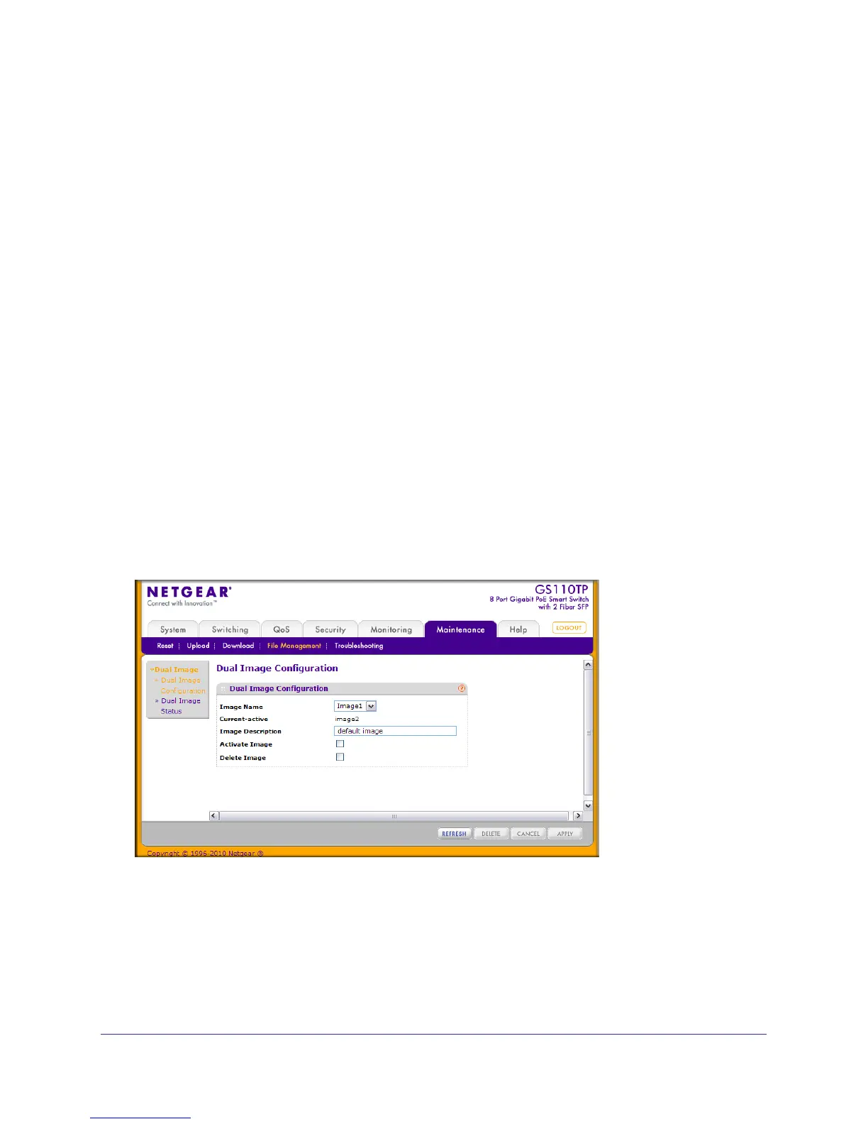 Use the Dual Image Configuration page to set the boot image, configure an image