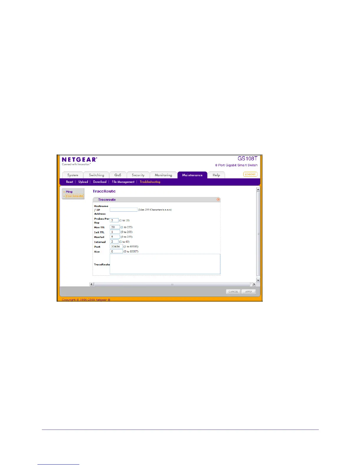 To display this page, click Maintenance Troubleshooting Traceroute.