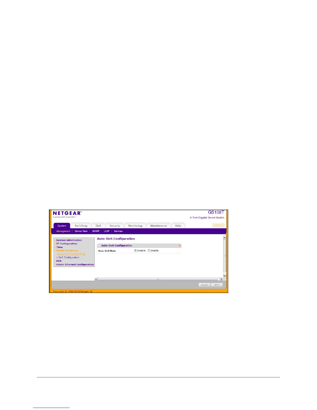 To access the Auto-DoS Configuration page, click System Management Denial of