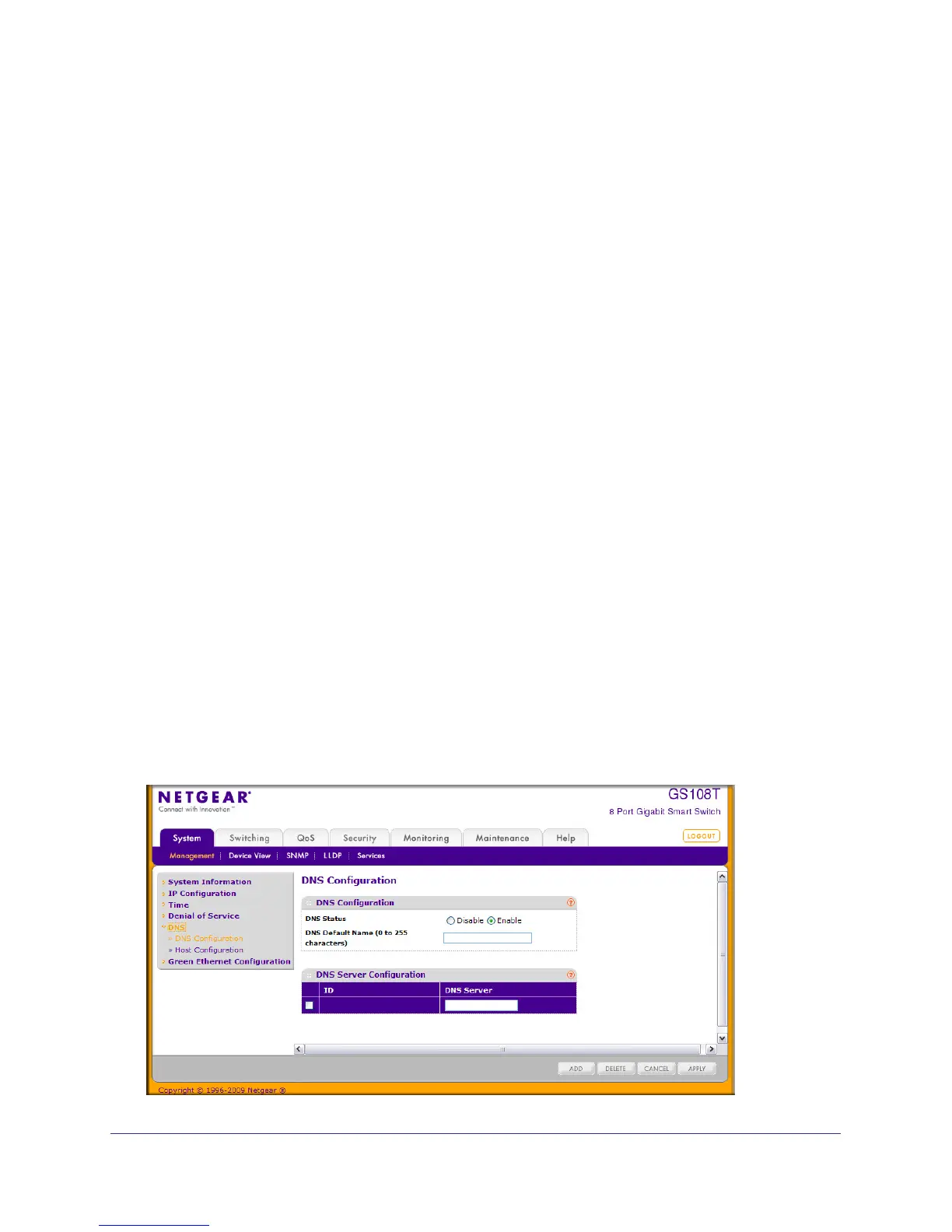 To access this page, click System Management DNS DNS Configuration.