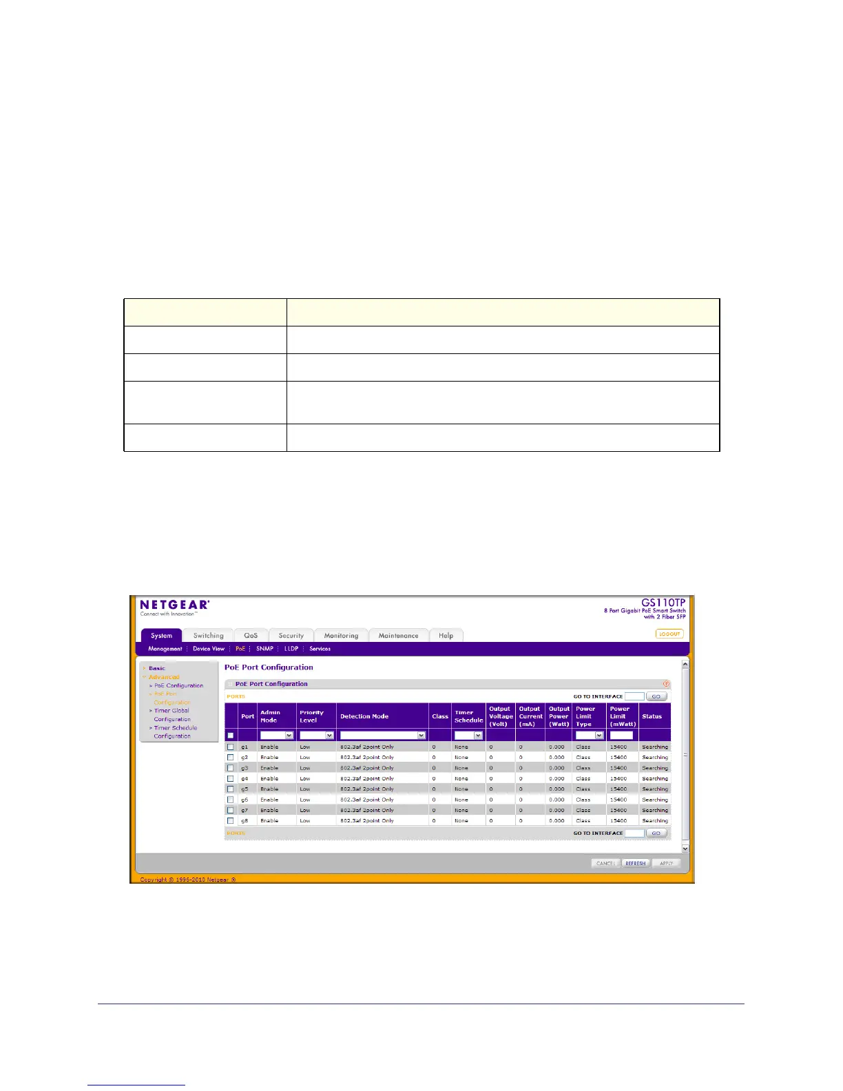 To display the PoE Port Configuration page, click System PoE Advanced PoE Port