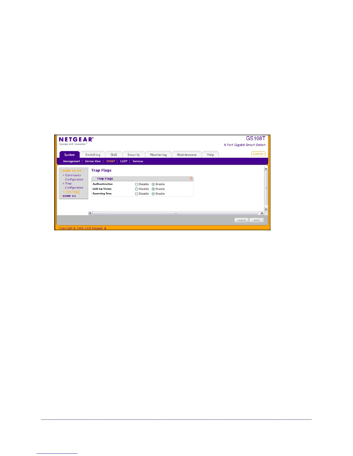3. From the Spanning Tree field, enable or disable activation of spanning tree traps by