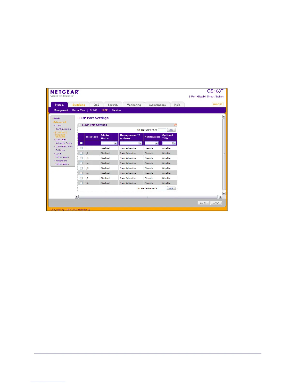 To display the LLDP Port Settings page, click SystemLLDP Advanced LLDPPort