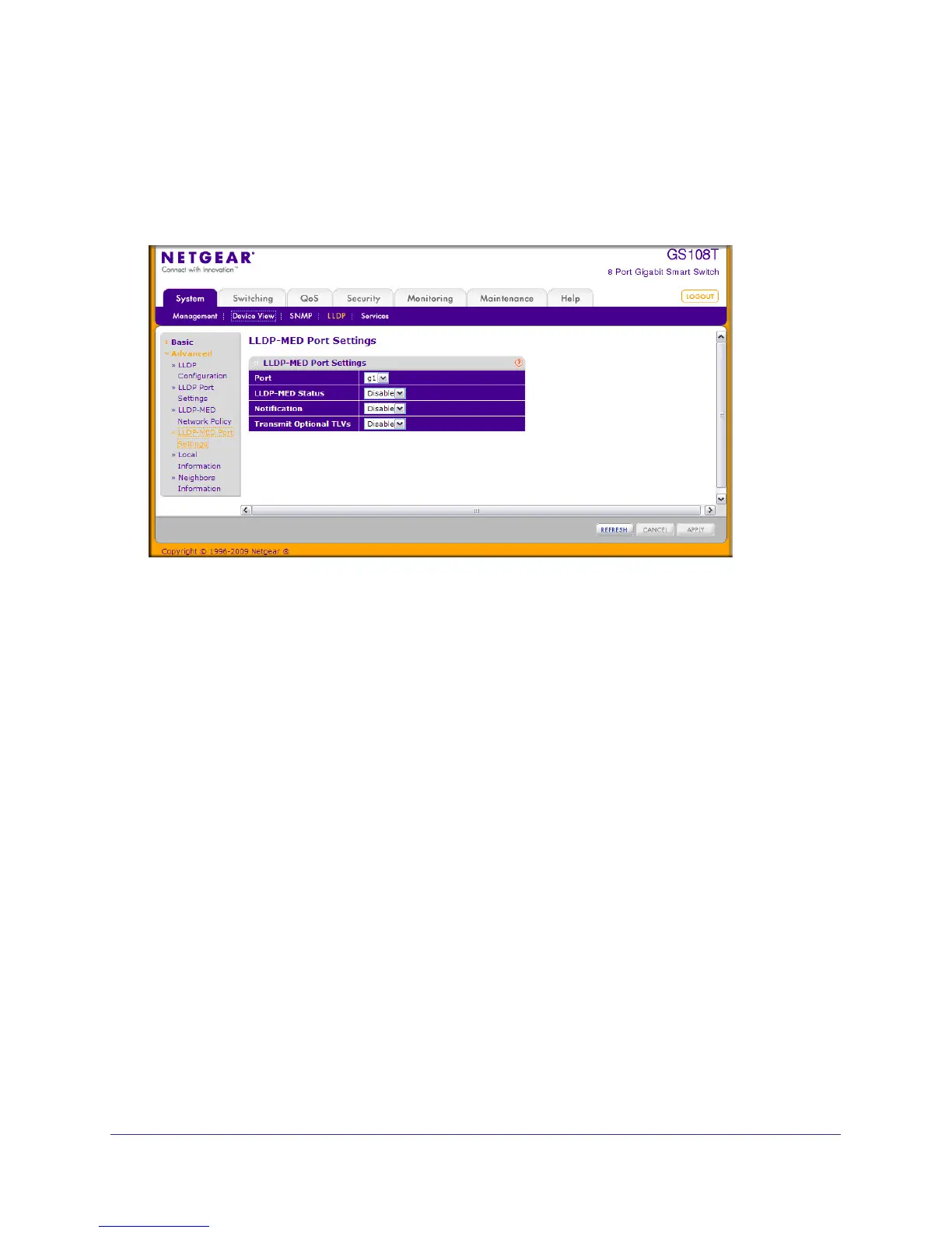 To display this page, click System LLDP Advanced LLDP-MED Port Settings.
