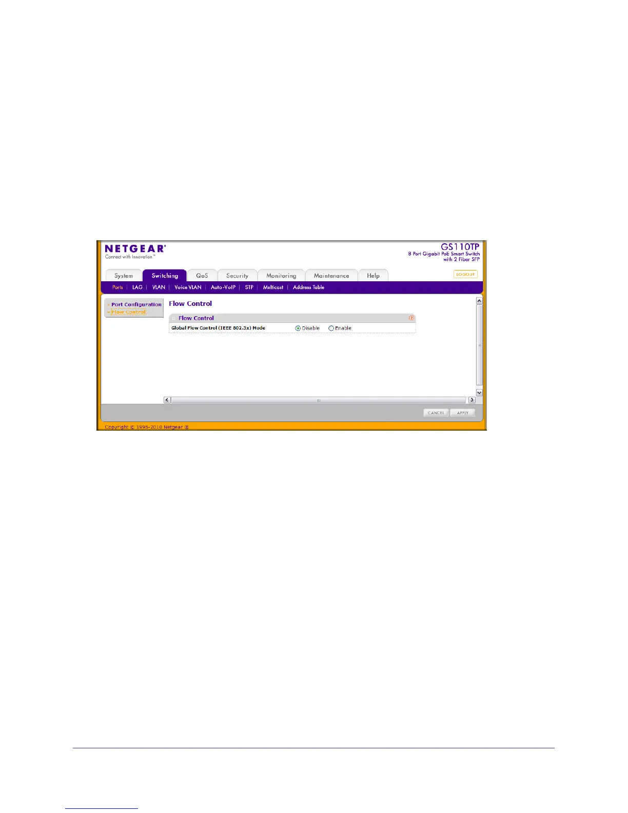 To display the Flow Control page, click Switching Ports, and then click the Flow Control